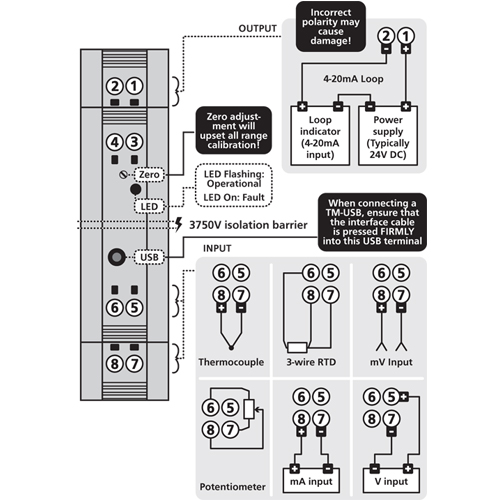 As standard they feature a universal 2-wire, 4~20mA output (loop power) and universal input which accepts the following: