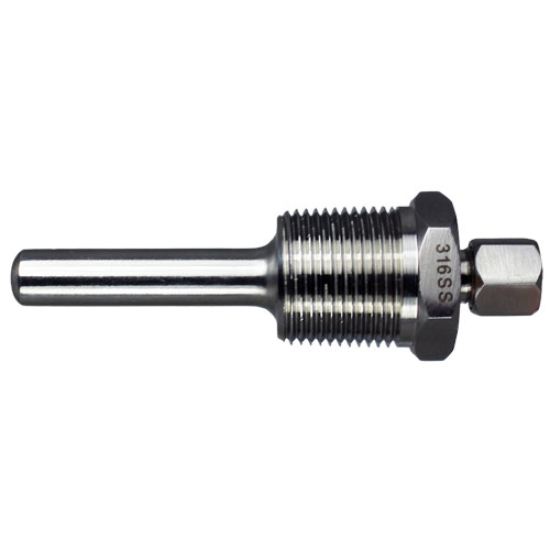 The 3/4 inch BSPT threaded thermowells have an integrated compression fitting that includes a single compression olive to suit 6.0mm diameter tubes. They are fabricated from 316 Stainless Steel material and supplied with a male process thread (complete with hexagon) which screws into the process.